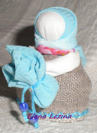 Это очень маленькая кукла высотой примерно 7 см. Ещё эту куколку называют куклой на Счастье или «Ржевское счастье», так как она была найдена в раскопках древнего Ржева в слое 10 века. Изготовлена куколка из хлопковой ткани и льна. У малышки длинная льняная коса, которая не только украшает, но и является опорой куклы. Этот оберег очень удобно носить в женской сумочке, а ещё эта крохотулька вызывает невероятно тёплые чувства, настоящая Дюймовочка!