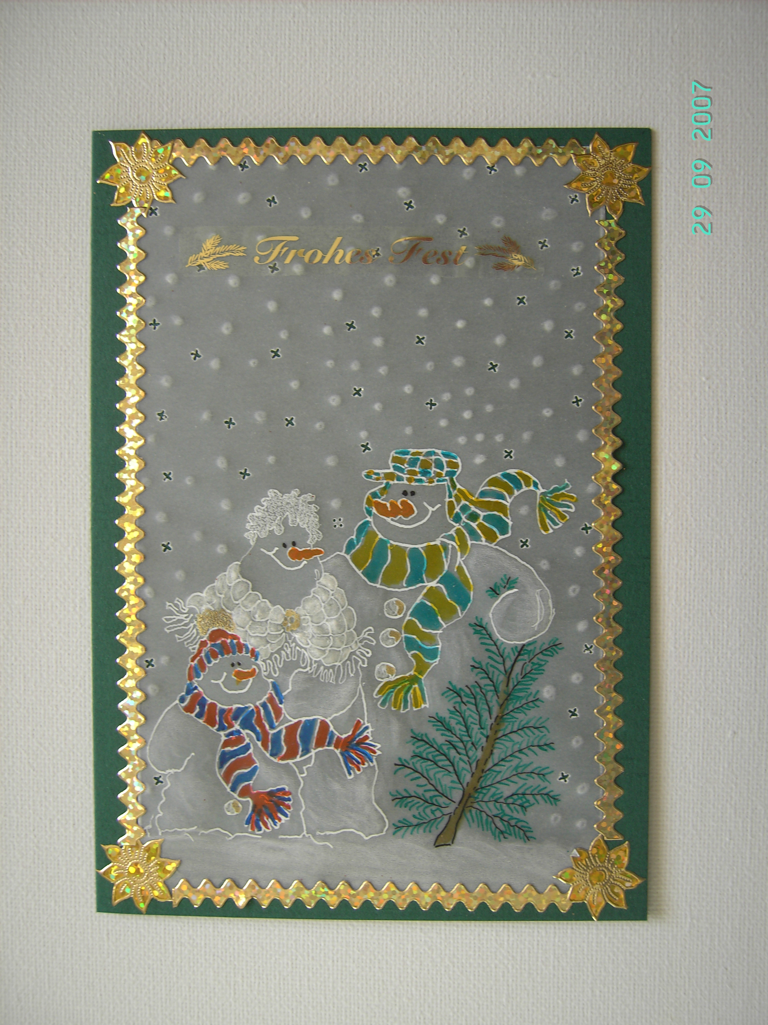Привет, я живу в Германии, занимаюсь ручнои работои 5 лет. Попробовала уже несколько техник (работы выставлю в своеи персон.галлерее). Недавно в Германии появилась новая ручная работа, которая называется Пергаманотехник. Нужные инструменты: пергаментная бумага (она как калька, но толще и пропитана ваксом и прозрачнеи ), эмбоссинг карандаш (можно применять вязальныи крючок с разными по величине шариками на конце), прикель карандаш (можно примен. обыкнов.иголку, но не самую тонкую),акварельные карандаши, ваксавые карандаши или мелки, тушь всяких цветов, обыкновен. ученическое перо (перьевая ручка), острые маленькие ножницы (можно маникюрные). Это основные приспособления, без которых нельзя. Теперь технология: есть много шаблонов (рисунков). Берется рисунок, на него накладывается пергамбумага, обводится перьевои ручкои и тушью (какого цвета вы хотите, но в основном всегда белым цветом). Эта работа делается на лицéвои стороне работы. Раскрашибать можно как с правои, так и с левои стороны. Это я рассказала одну технологию, где работают с карандашами или красками. Эмбоссинг и прикель техника другая технология. Это в следующии раз, если кого-то заинтересует.