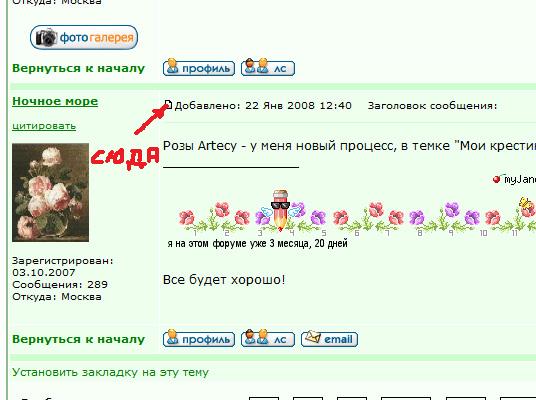 Чтобы дать ссылку на конкретное сообщение в теме, надо нажать на прямоугольничек перед словом "Добавлено" и датой наверху сообщения. В открывшемся окошке в адресной строке вверху будет ссылка на это сообщение - просто скопировать ее и все дела