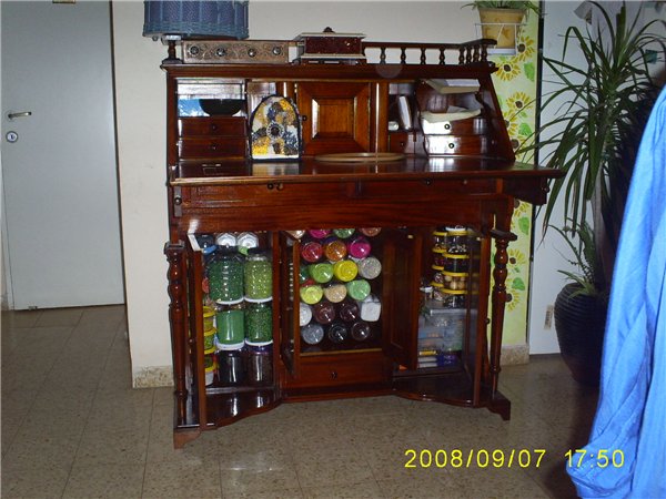 тема замерла. Мня долго интересовал вопрос как организовать и куда распихать свой мотлох. а вчера супруг мне секретер подариль. Всю ночь вокруг него круги нарезала