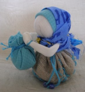 Пасхальная кукла символизирует женщину, которая идет на Пасху к церкви освящать пасхальный кулич. Выполняется кукла в красных цветах. Лицо такой куколки обязательно должно быть красное. На лице также можно выплести тоненький желтый, или золотистый крестик. В ручках куколка обычно держит узелок, который символизирует котомку с куличами, а можно вложить яйцо.