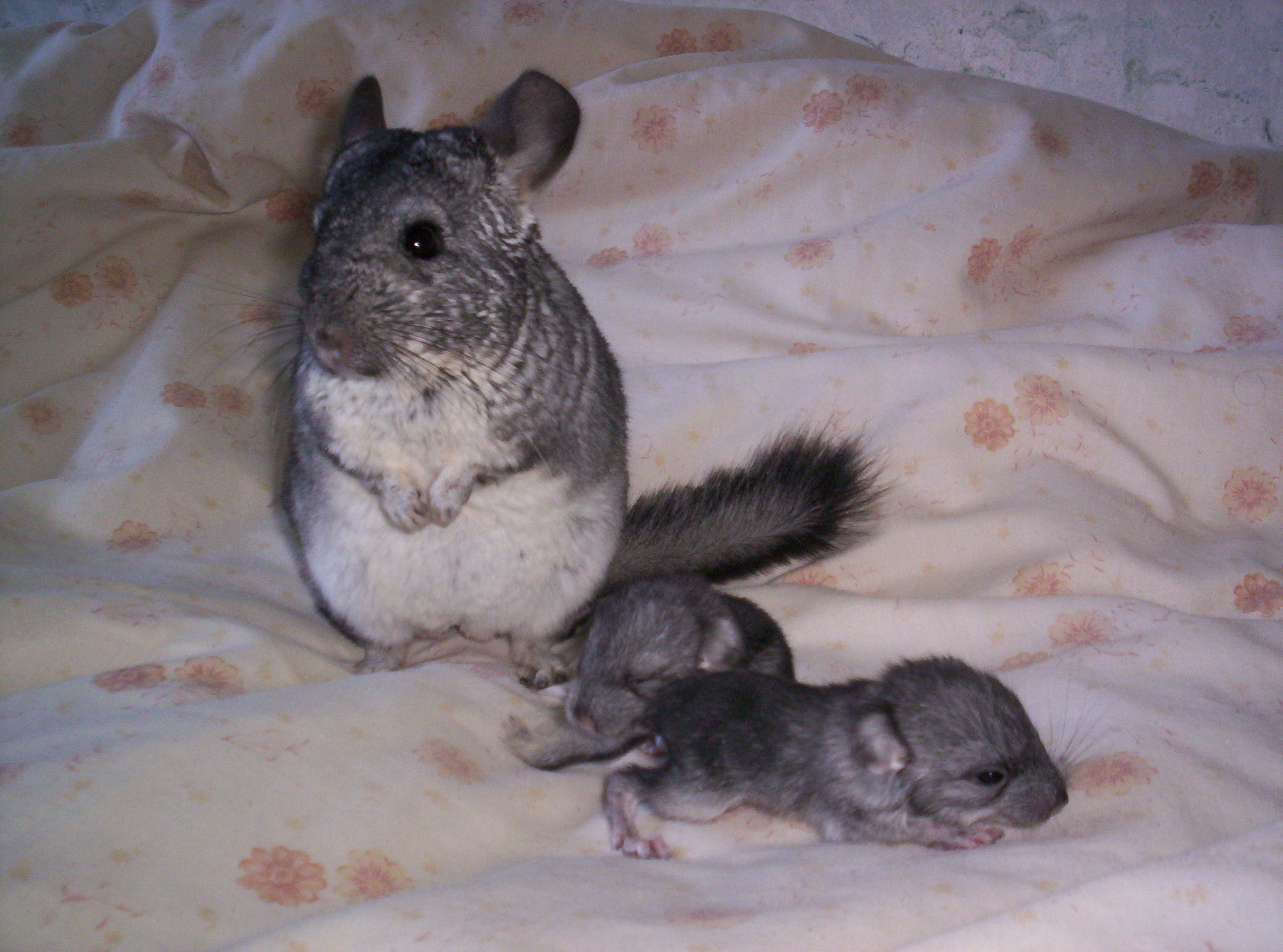 У нас вчера детки народились. Две штуки опять.Шиншиллята.Наши звери живут маленькой семьей.Папа,мама и дочь.Теперь еще два малыша.И папа и старшая сестра очень заботятся о них. Помогают маме.Все спят тесной компанией,малыши в середине.Даже удивительно.Вот они наши сокровища: