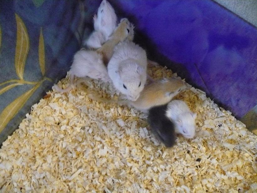 Да, они замечательные зверьки. Забаные, трогательные, любопытные. Легко приручаются У меня они тоже есть, а сейчас мы пристраиваем потомство от пары. Такое удовольствие за ними наблюдать. А как забавно они сидят на попе и едят, удерживая в передних лапках (их и лапками то трудно назвать, совсем как ручки) еду. А чтоб не грызли то что нужно есть масса приспособлений. У нас, например, у тех которые живут в специальном террариуме поилка снаружи, только носик от поилки внутри, а он металический. У тех которые в аквариуме живут (как раз пара с потомством) поилка висит повыше, до носика достают, а до пластика нет Малышам на фотке уже месяц. Самостоятельно, отдельно от мамы их можно держать с 5-6 недель. Вот такие милые зверьки. Они действительно практически не пахнут (если здоровы и раз в неделю меняются опилки в их жилище). И, как правильно сказала Филора, не относятся ни к мышам ни к тушканчикам, на которых так похожи.