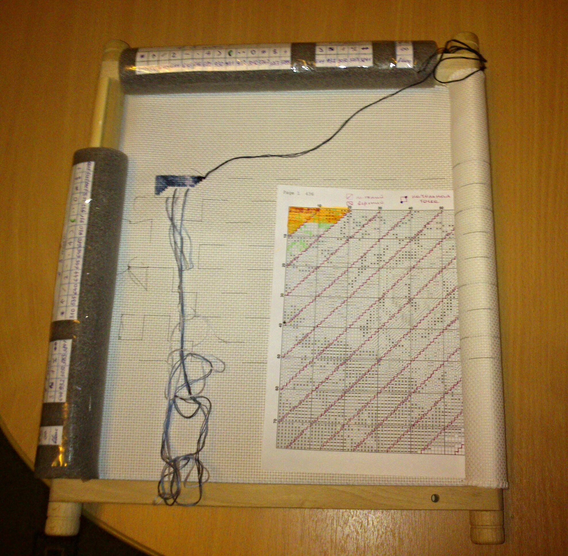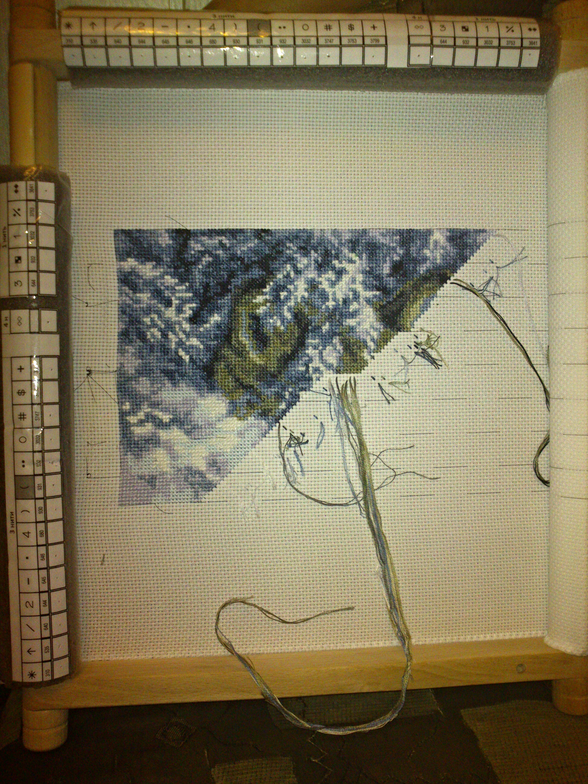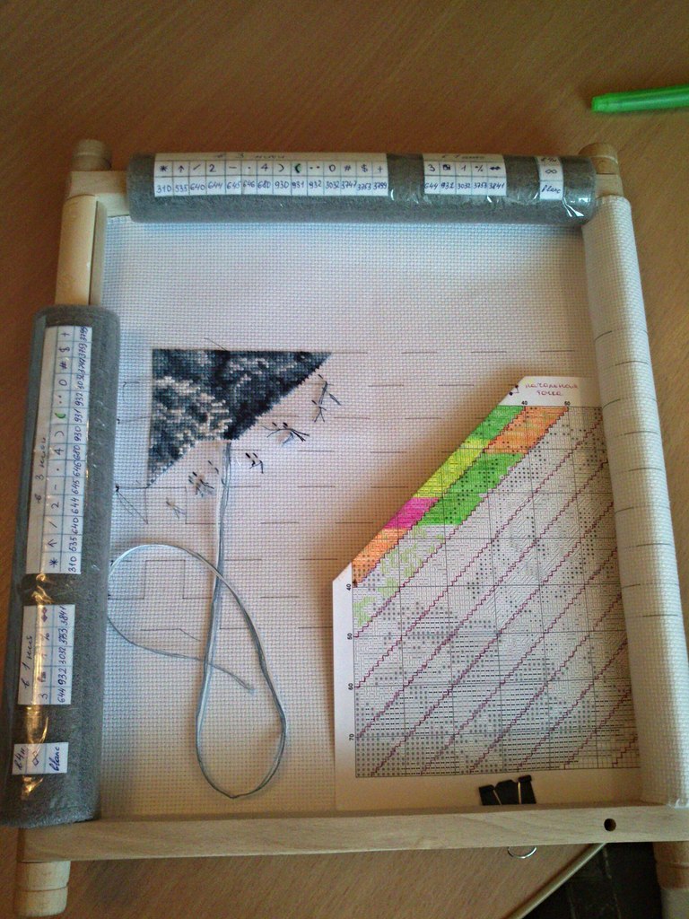 начала вышивать волков от чаривна мить, для этого дела прикупила гобеленовую раму от золотого руна. Осваиваю новый для себя метод диагональной парковки
