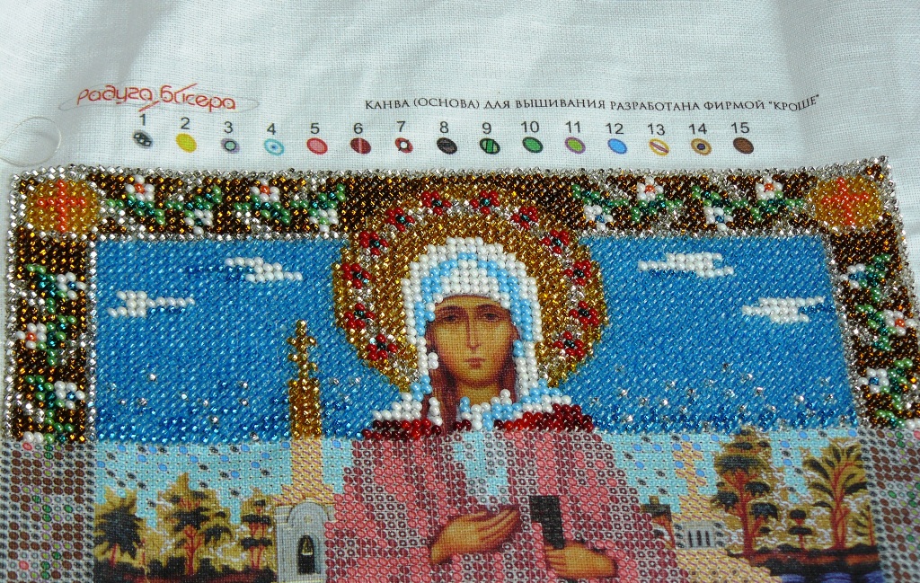 Вот Ксения - только начало. Именно столько я сначала сшила, а потом все расшила - мне не понравилась цветовая гамма, подобранная производителем. Практически весь бисер заменила. Сейчас уже отшита Ксения в одежде полностью - и тоже бисер заменила.