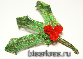 - 3 ягодки, непрерывная петля из низки бисера дл до 15-20 см, сложить вдвое, еще раз и сформировать ягодку.