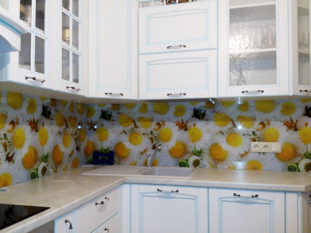 УФ печать на данный момент самая лучшая. Цвет яркий, устойчива к воздействиям химическим и механическим и четкость высокая. Цветопроба - это когда распечатывают на стекле участочек фартука и смотрят на кухне - какой из вариантов оттенков наиболее подходящий, ведь на экране монитора и в реальности цвет немного отличается, а так можно выбрать самый подходящий Посмотрите на мой фатучек