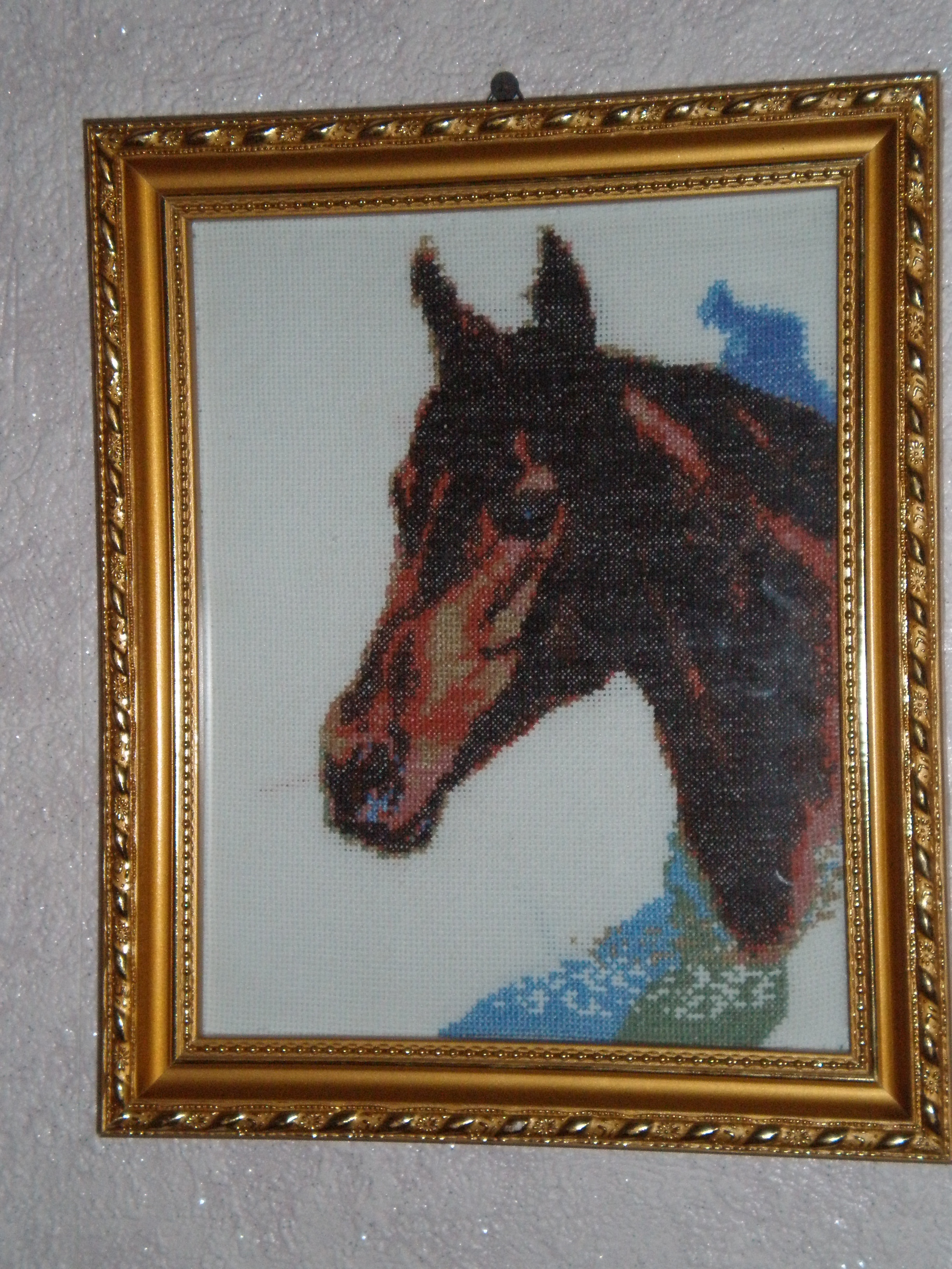 потом доче на день рождения лошадку вышила , потом она увидела схемку котика и попросила и его