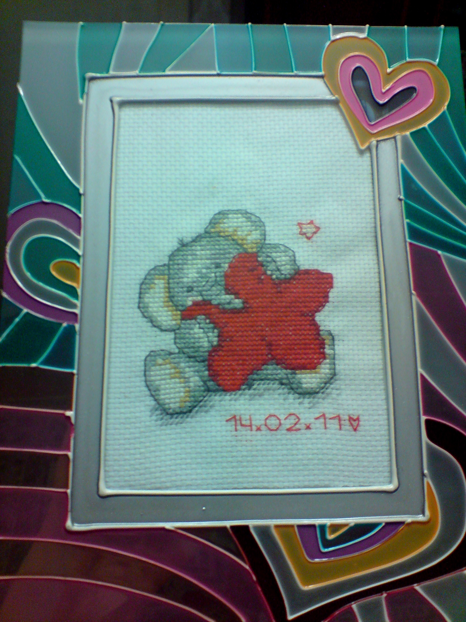 Подсела на иголочку совсем недавно.Но думаю,что основательно.Просматривая процессы,заметила,что так вышивать интереснее.Начала подготовку к дню св.Валентина с подарка...А вот решила я вышить слоника(я их собираю фанатично^^)