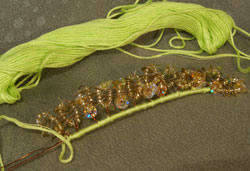 шаг 1 - набор низки (2 бисеринки, 1 пайетка..)