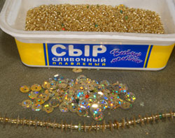 1. Материалы - пакетик до 100 гр. мелкого бисера и пайеток - если бисер желтовато-золотистый, то пайетки серенькие и наоборот Этого количества вам хватит на НЕСКОЛЬКО ДЕСЯТКОВ ВЕРБОЧЕК. = (на 100 руб).