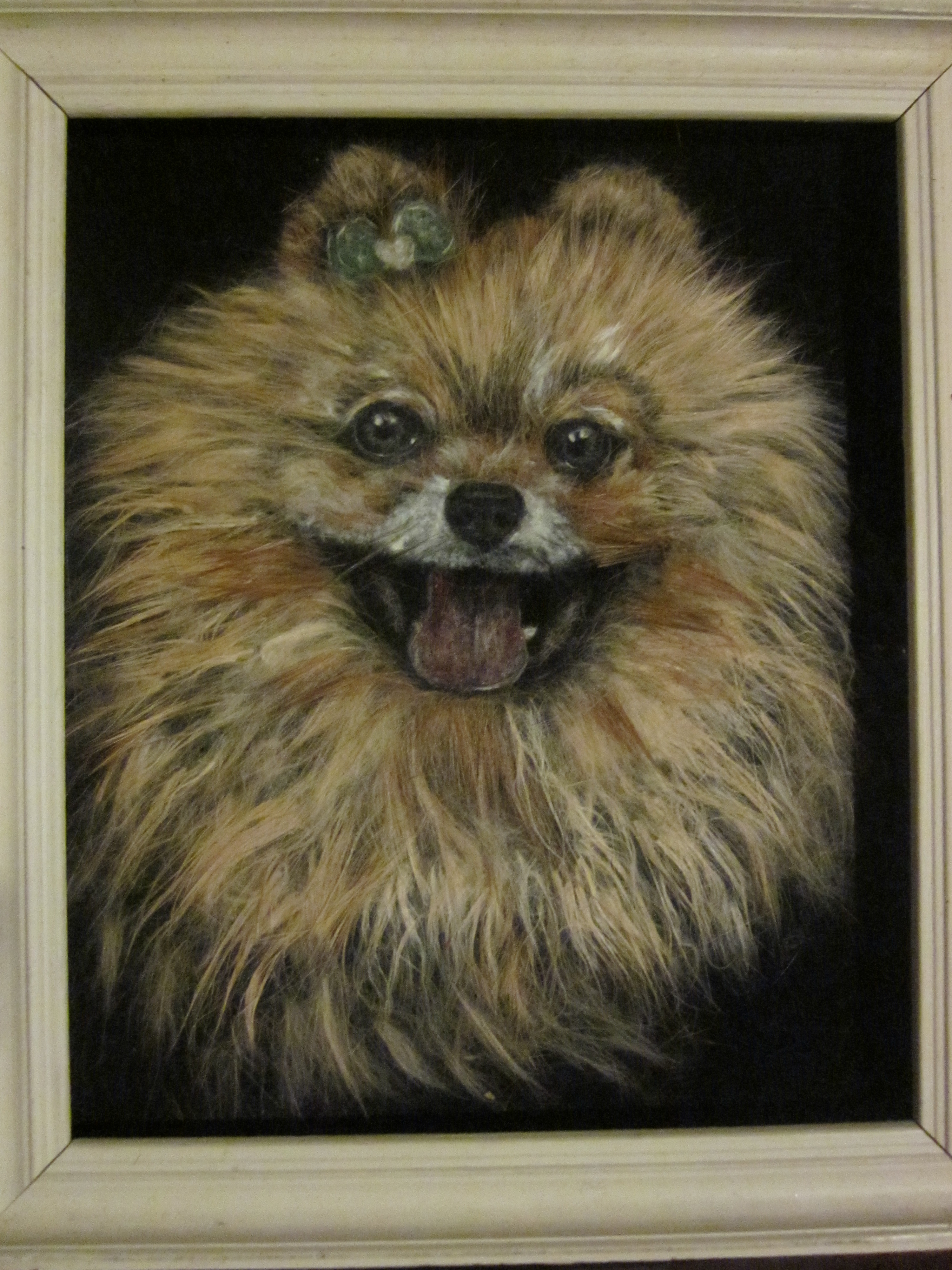 Здравствуйте все, кто заинтересовался моим творчеством. В основном я нахожусь на форуме флористика, так как делаю портреты из растительного пуха (тополь, ива. хлопок). Но в последнее время увлеклась портретами сделанные из шерсти кошек. Поэтому , как я думаю, мое творчество относится больше к рукоделию.У меня несколько персов, так что шерсти лишней много. Собачья подходит не вся, зависит от породы. Техника выполнения такая как и в флор-портретах. То есть берется бархатная бумага и раскладывается шерсть животного. Вначале портрет переводится на кальку. Клей и краска не применяется. Есть небольшое отступление от правил. когда надо в цвете показать некоторые детали (напр. глаза, рот, язык. бантик и т.д.) Таких работ у меня скопилось на целую отдельную выставку. Сейчас я покажу несколько последних, собачек только что закончила. Еще несколько работ на финише.
