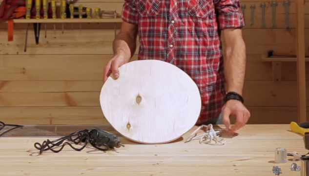 1) Чертим окружность на фанере и вырезаем её электрическим лобзиком.