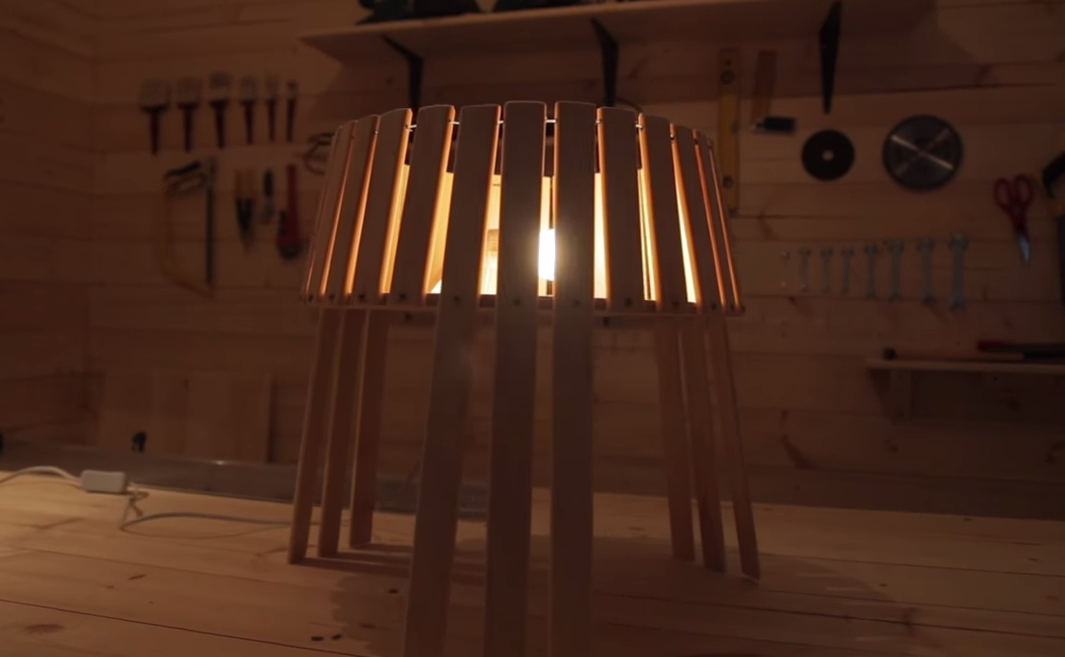 Надеюсь, кому-нибудь это понадобится! Более подробно можно посмотреть на видео: Настольная лампа из реек