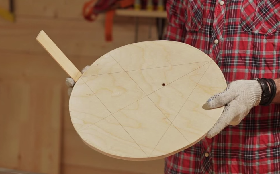 1) Чертим окружность на фанере и вырезаем её электрическим лобзиком.
