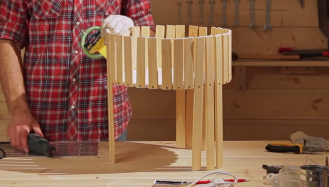 Надеюсь, кому-нибудь это понадобится! Более подробно можно посмотреть на видео: Настольная лампа из реек