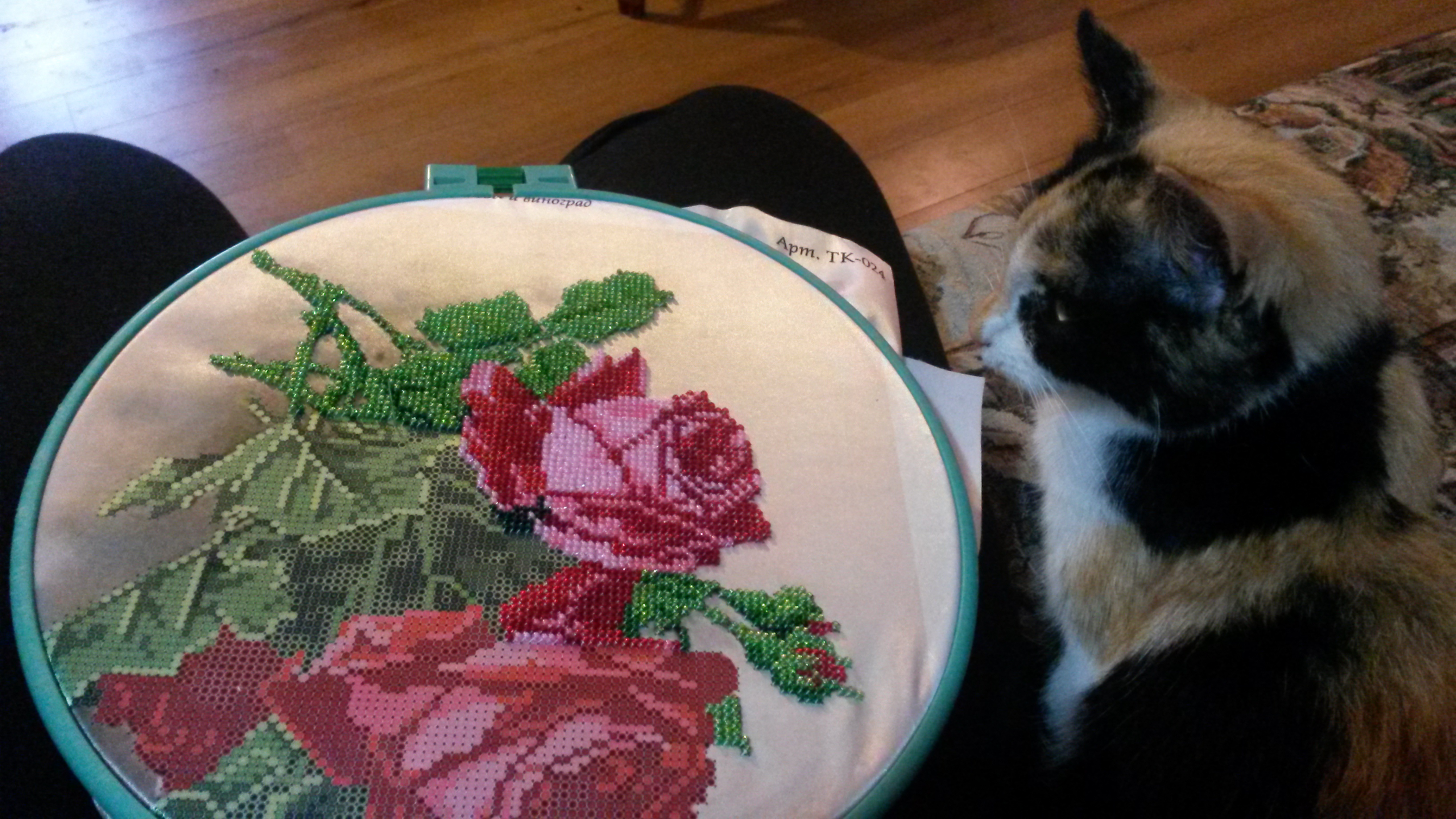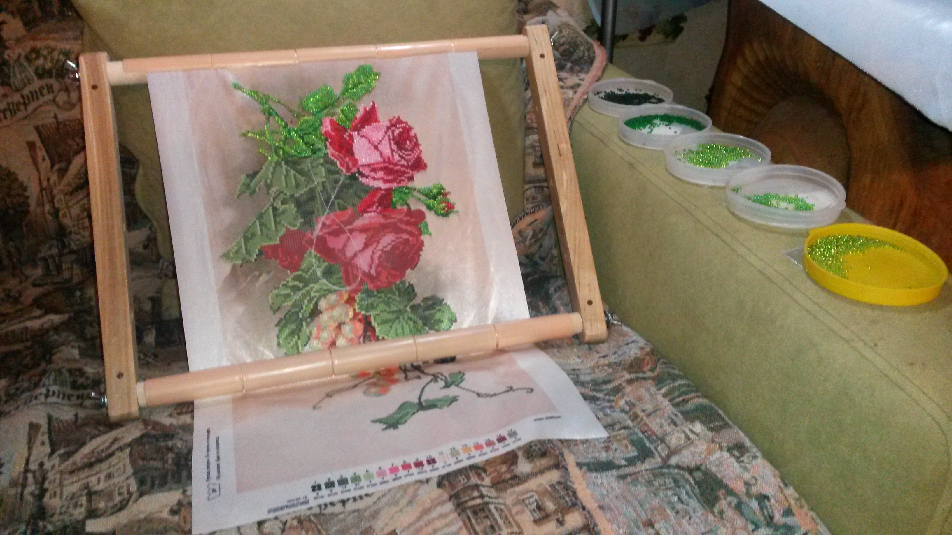 Всем привет! Решила и я выложить свой процессик. Розы и виноград. Очень красивая работа получается.