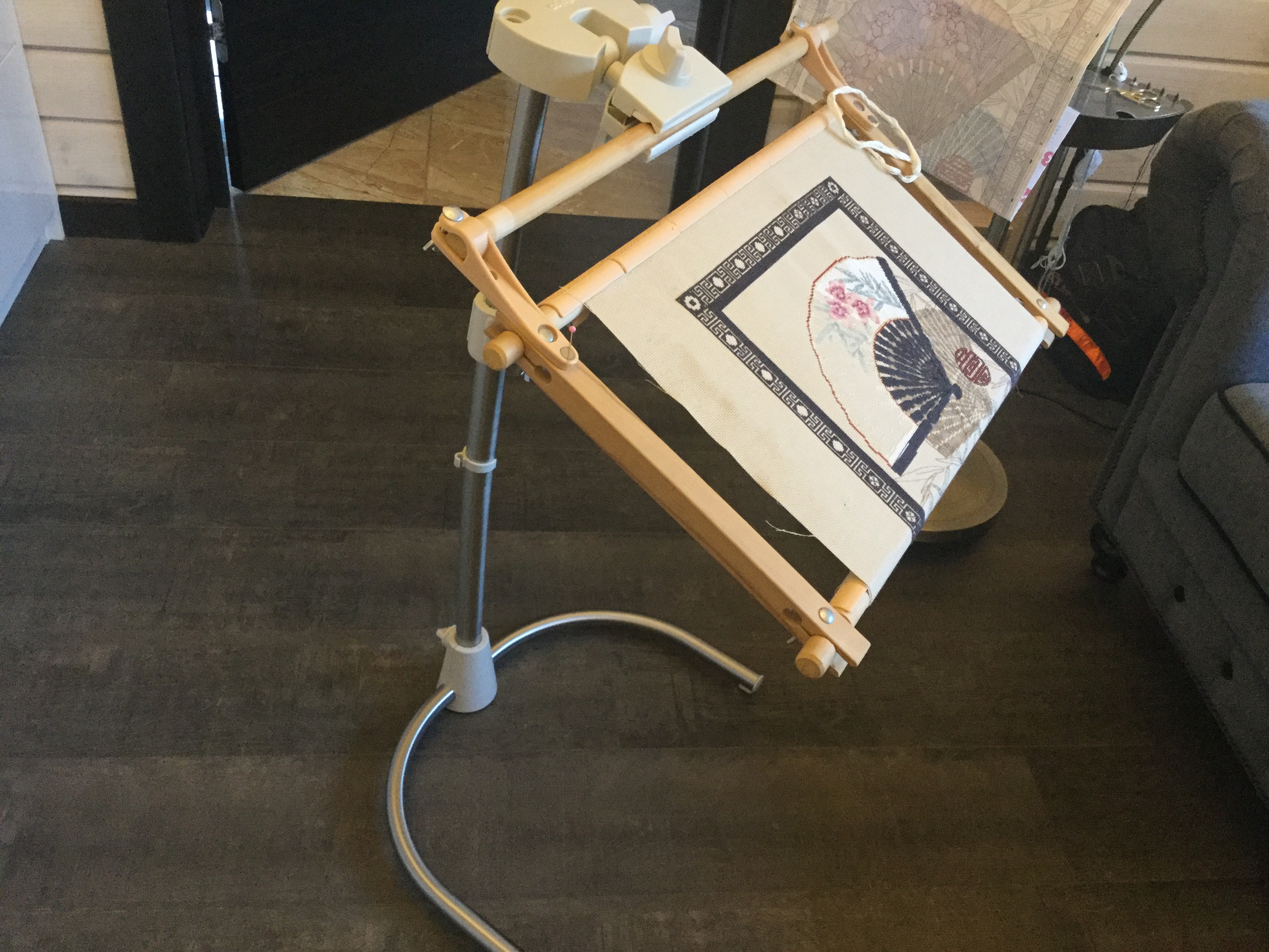 Теперь у меня есть даже свой рабочий кабинет, любимый муж подарил мне лампу для рукоделия и держатель , так что вышиваю в полном комфорте ))) приноровилась вышивать под аудиокниги, совмещаю приятное с полезным. Подсела на детективы Кеплера и Несбё)) прослушала уже почти все!