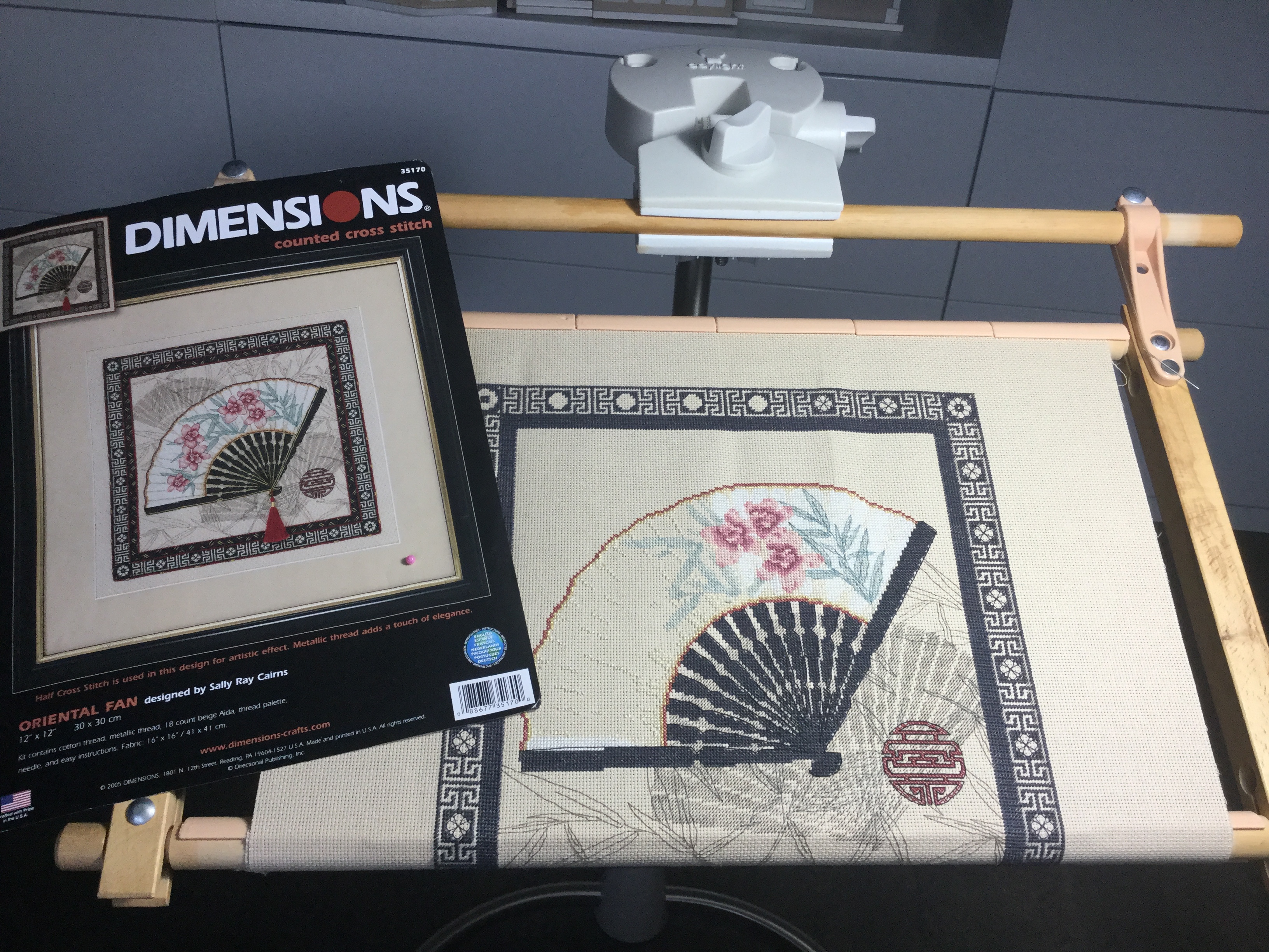 И собственно поподробнее текущий процесс. Восточный веер от Дим. Шьётся достаточно легко , цветов немного. Правда потом предстоит процесс оформления разными шнурами и золотым металликом, и кисточка. Надеюсь за следующую неделю закончу под детективчик))