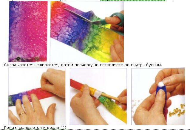 Только я добавила бы, что ткань нужно кроить по косой, тогда сшитая полоска будет пластичной, легче формировать бусы