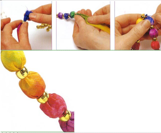 3. Бусы, сформированные из сшитой в трубу полосы ткани