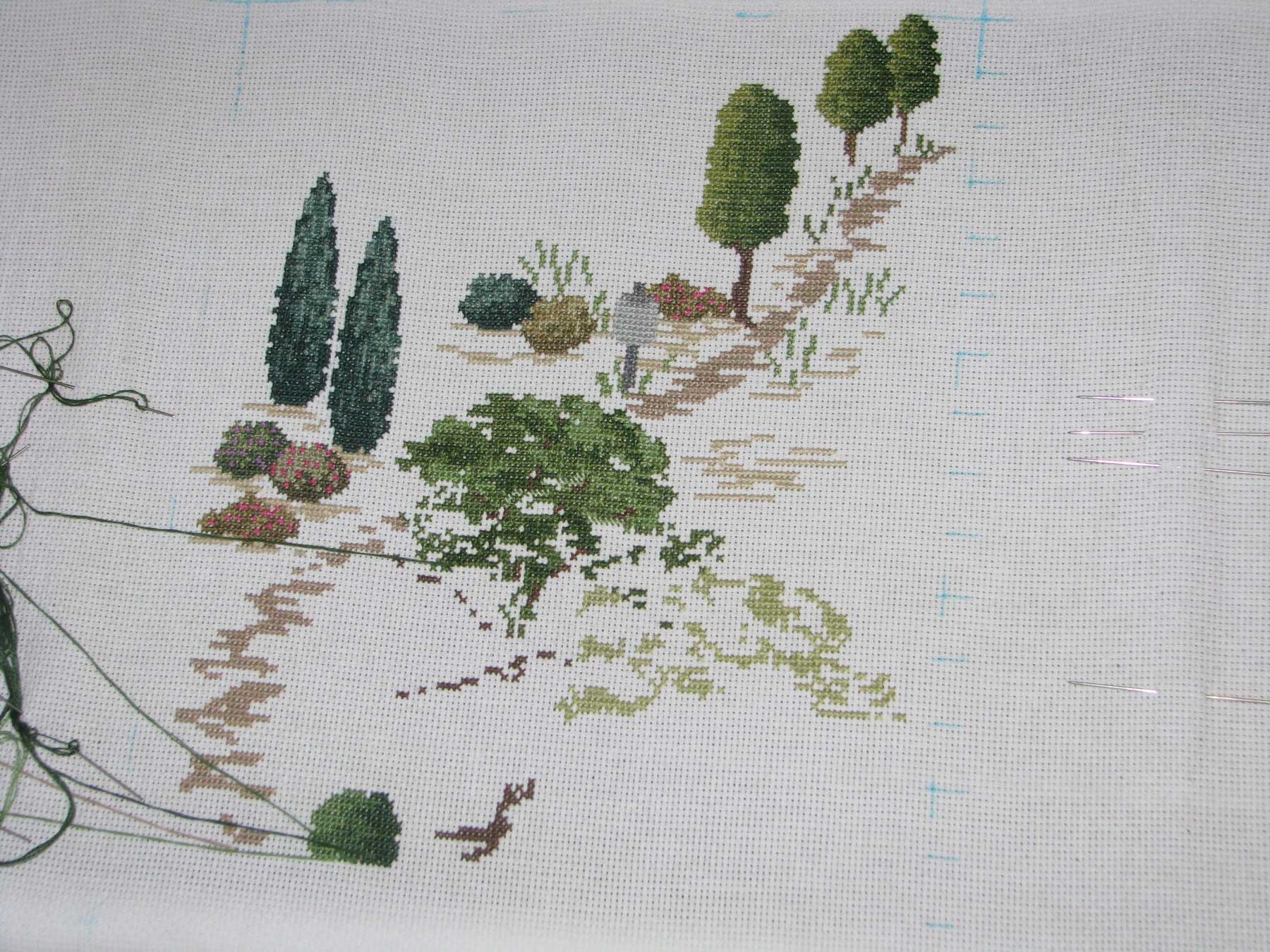 я в программе "спилила" сосну, которая полморя и -неба заслоняет и поменяла несколько морских цветов на более чистые. осталось заменить немного зелень, по схеме она уже пожухлая немного, хочу зеленушку посвежее и домики побелее...