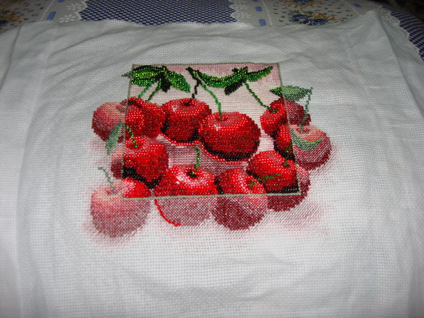 Вышивалось на удивление очень быстро.Осталось много ниточек так что теперь я со спокойной душой смогу исправить свои клубнички