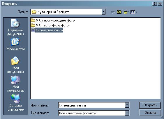 В открывшемся окне выбирать нужный файл и нажать "Открыть".